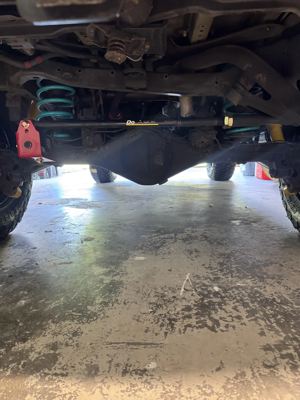 • When you lift your rig, the track bar angle gets steep. That forces the axle to swing left/right instead of moving up/down — making the rear feel unstable.